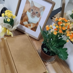 Em 2021, veio o diagnóstico de pedras nos rins. Não havia cura, apenas cuidados paliativos. E assim foram seus últimos anos: com alguns sustos, sim, mas principalmente com muito cuidado, dedicação e todo o amor do mundo. Anselmo foi protegido, acolhido e amado até o último instante. Ele tinha também uma marca única: uma pequena mancha em formato de taça em uma de suas patinhas. E mesmo após soro, exames e outros cuidados, essa marca permaneceu intacta. Quando perceberam que ela continuava ali, firme, foi um momento profundamente emocionante, como se aquele detalhe tão especial fosse um lembrete silencioso de que sua essência jamais seria apagada.