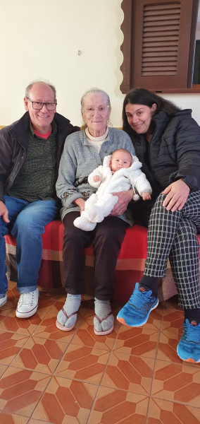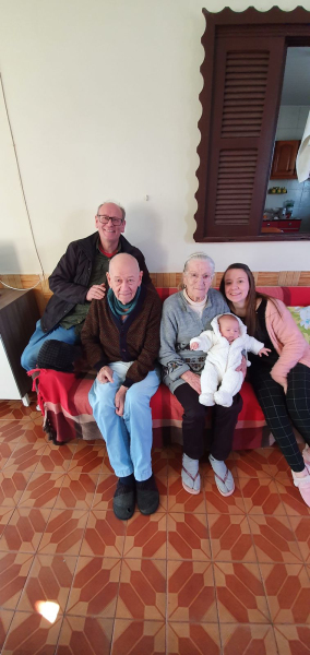 Deixa também os netos Ana Carolina Casagrande, Samuel Casagrande, Gabriel Pereira, Túlio Tomazi e Viviane Tomazi, e os bisnetos Flávia Casagrande, Isabela Casagrande e Maria Eduarda Tomazi, que seguirão carregando suas lembranças, valores e ensinamentos.